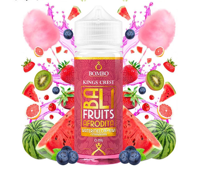 Afrodita de Bali es una irresistible fusión de jugosa sandía, kiwi, frutillas y un delicioso algodón de azúcar finalizado con sirope de grosellas y aromas secretos.